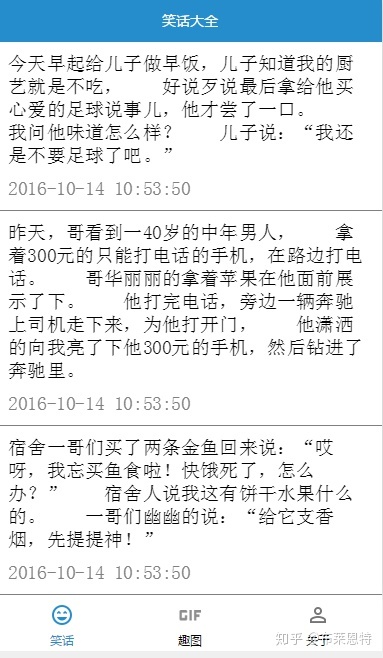 是学习完微信小程序后实现的一个demo,采用聚合数据的免费api获取最新的文本笑话和趣图(图片和gif图)