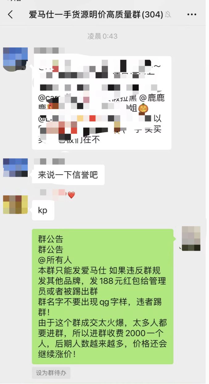 1、卖圈子,卖社群:聚焦一大批的店主资源,建一个社群收门槛费,下面这个是一个专门卖爱马仕的,一个群资格就是2000元,三百个人,即使只有100个是收费的也20万了。
