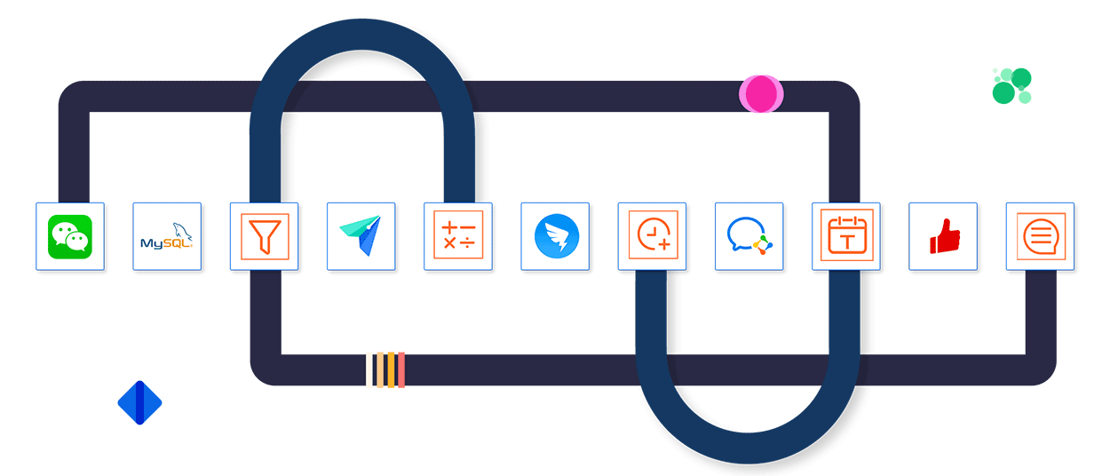 通过集简云可以快速扩展您现有系统的功能,例如为您的表单系统增加微信提醒,邮件提醒,短信提醒功能,为您的微信公众号增加赠送卡券同步CRM系统功能,为您的OA办公系统增加逻辑判断与数据存储功能等等。而这一切无需任何技术开发,简单快速地提升您系统的能力。