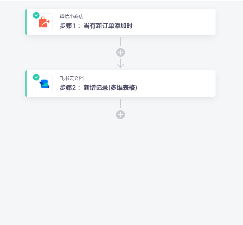 1.实现目的:每当微信小商店有新订单时,可以自动同步订单信息到飞书多维表格进行汇总,无需人工再手动一一进行复制粘贴,省时省力,且避免信息同步错误。