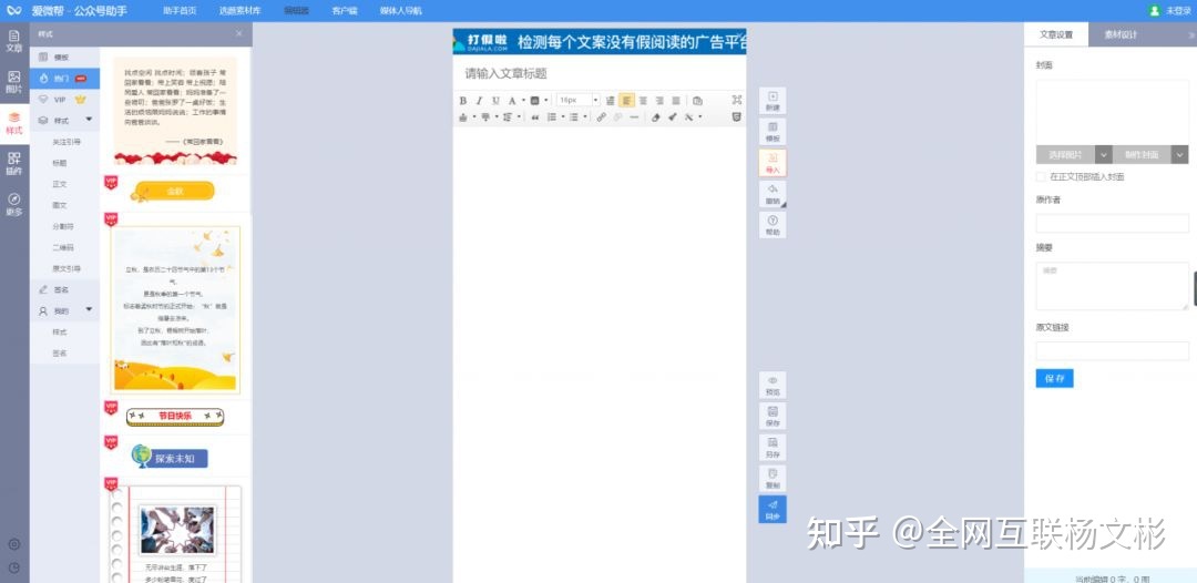 i排版微信编辑器,整体风格轻松明快,页面也比较干净。相比前面几个的功能比较少,不过很多组件也都具备了,对排版要求不是很高的话,这个软件完全是可以满足的,强烈推荐。