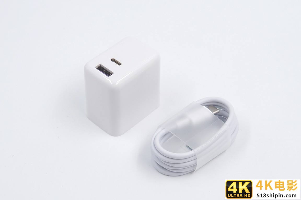 包装盒内部设有两个凹槽分别用来放置充电器和数据线,充电器外套有防尘袋。