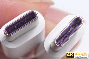 接口特写,USB-A口紫色胶芯,USB-C口白色胶芯。