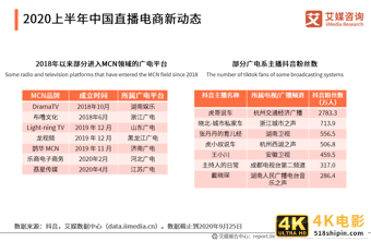 从2018年开始,一些官方媒体开始以多种方式进入MCN领域。今年,广电系主持人开始显示出影响力,例如,2020年5月1日,朱广权、撒贝宁、康辉、尼格买提组成“央视 Boys”首次开启直播带货, 3 个小时的直播时间里,成交额超 5 亿元,观看人数超 1000 万。