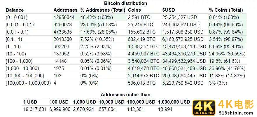 这样的怀疑确有它的道理,近年来,持有集中化一直是比特币面临的一个问题。彭博社就曾经发文,称“95%的比特币被控制在2%的账户上”,而数据网站BitInfoCharts上公布的相关数据似乎也证实了彭博社的观点。