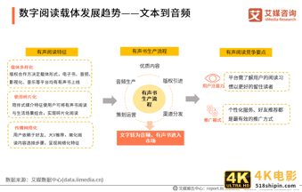 有声书市场已呈现出较为稳定的良性循环。音频是最常见的数字订阅形式,有声书占据了很大的份额。用户主动探寻自己想要的内容,有声书内容平台的竞争不止是与同类型平台竞争,如何吸引读者注意力是更大的竞争维度。一方面,平台需了解用户的阅读习惯以更好的留住读者注意力。另一方面,用户依赖于好友推荐、大V分享使选择变得更为简单,个性化服务、推荐都是最有效的推广方式。
