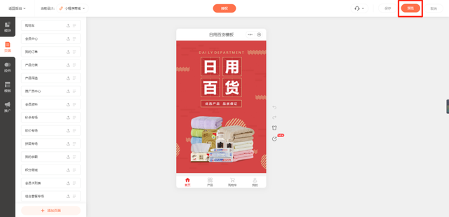 5. 编辑修改完小程序商城模板后,点击【预览】直接保存并查看完整的小程序商城,之后提交审核等待发布上线就可以了。