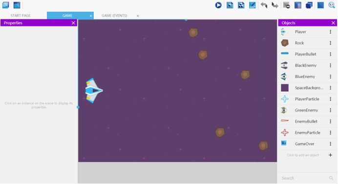GDevelop 是一款开源游戏引擎,采用拖曳与事件方式,通过快速加入游戏中的物件并且为其安排事件行为,可以用非常视觉化的方法制作游戏,支持本机(SFML)与 HTML5(网页)两种游戏引擎。