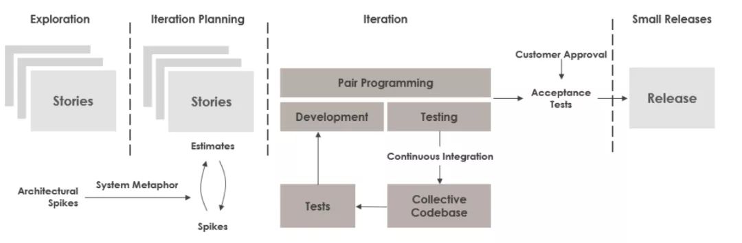 最初由Kent Beck描述的极限编程(XP)已经成为最流行、最具争议的敏捷方法之一。XP是一种纪律严明的快速、持续地交付高质量软件的方法。它的目的是在面对客户需求变化时提高软件质量和响应能力。它促进了客户的高度参与,快速的反馈循环,持续的测试,持续的计划,以及紧密的团队合作,以非常频繁的间隔交付工作软件,通常是每1-3周。