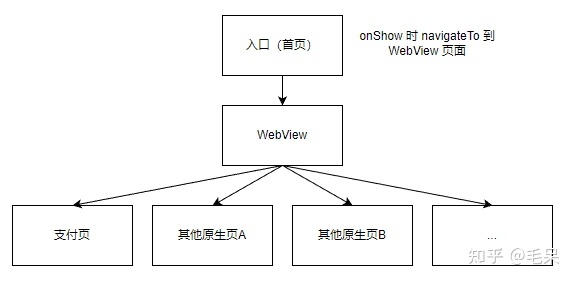 为了让左上角的出现返回,我们需要一个入口页面(没有内容的),当入口页面 onShow 时,则 navigateTo 到 WebView 页面。