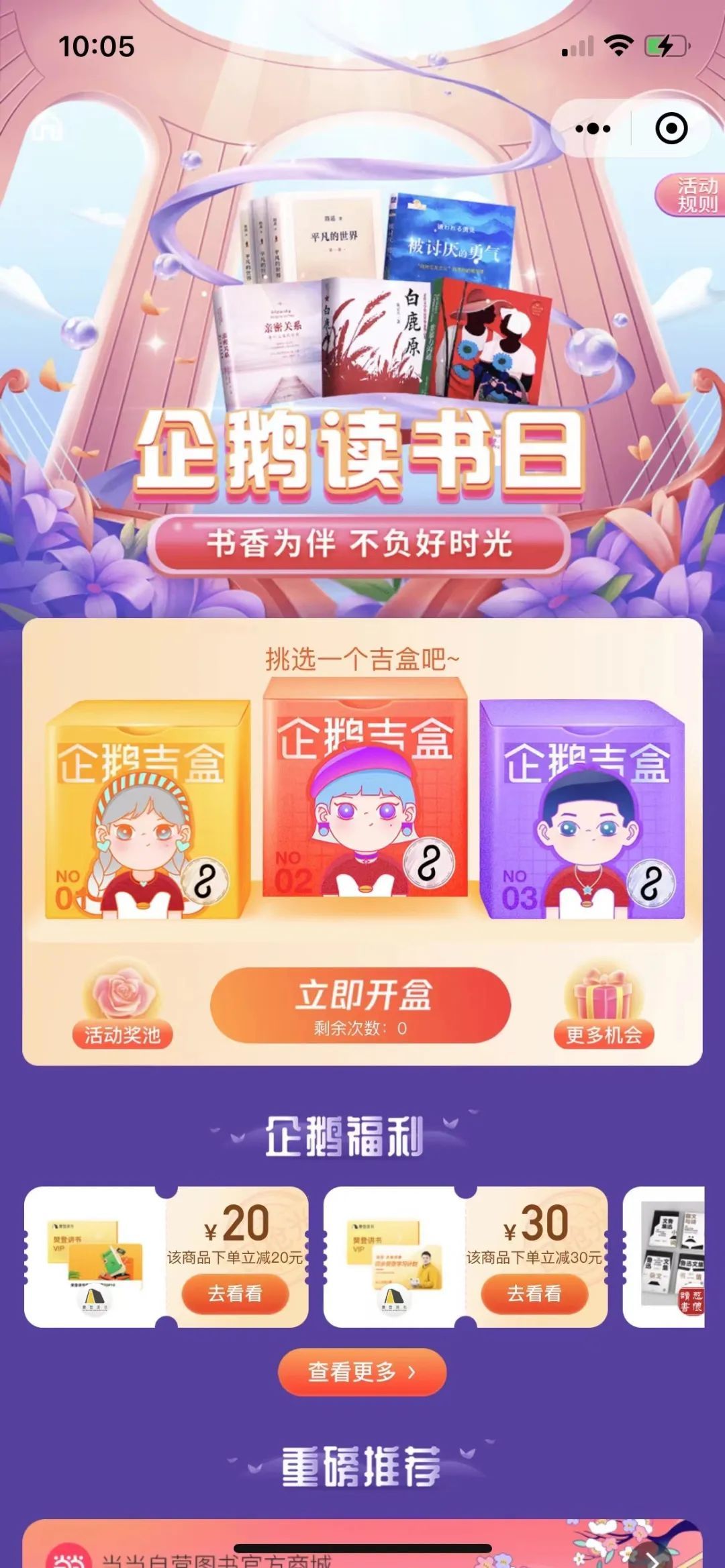 企鹅吉盒小程序“企鹅读书日”活动主场