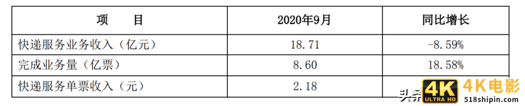 韵达9月经营简报