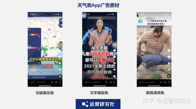 一是功能展示类,向用户展示核心功能点,例如用云图「精准」预报等,这类型制作成本偏低,可以提高投放的频率;