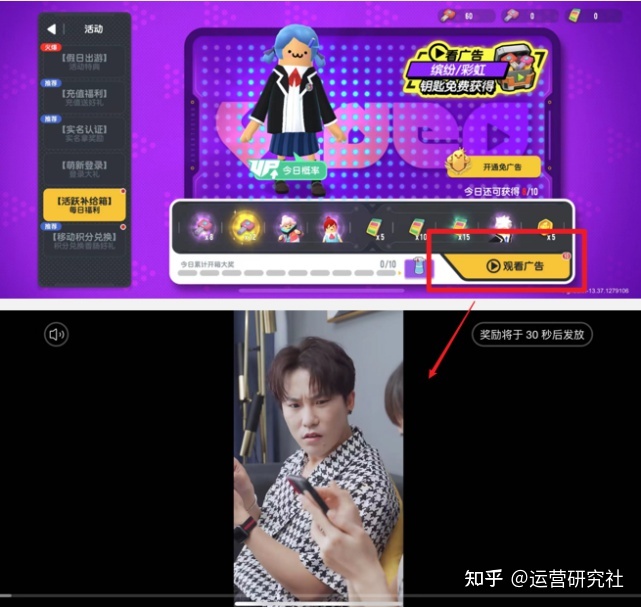 通过观看广告抽取限定时装、金币、箱子钥匙等奖励;