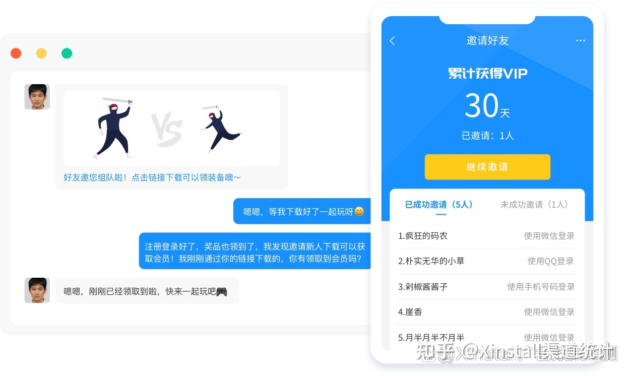 让游戏、社交更方便,老用户邀请新用户下载App进行互动,只需通过携带参数的链接安装成功,双方自动加为好友,都不必再次手动搜索好友ID添加即可建立好友关系。