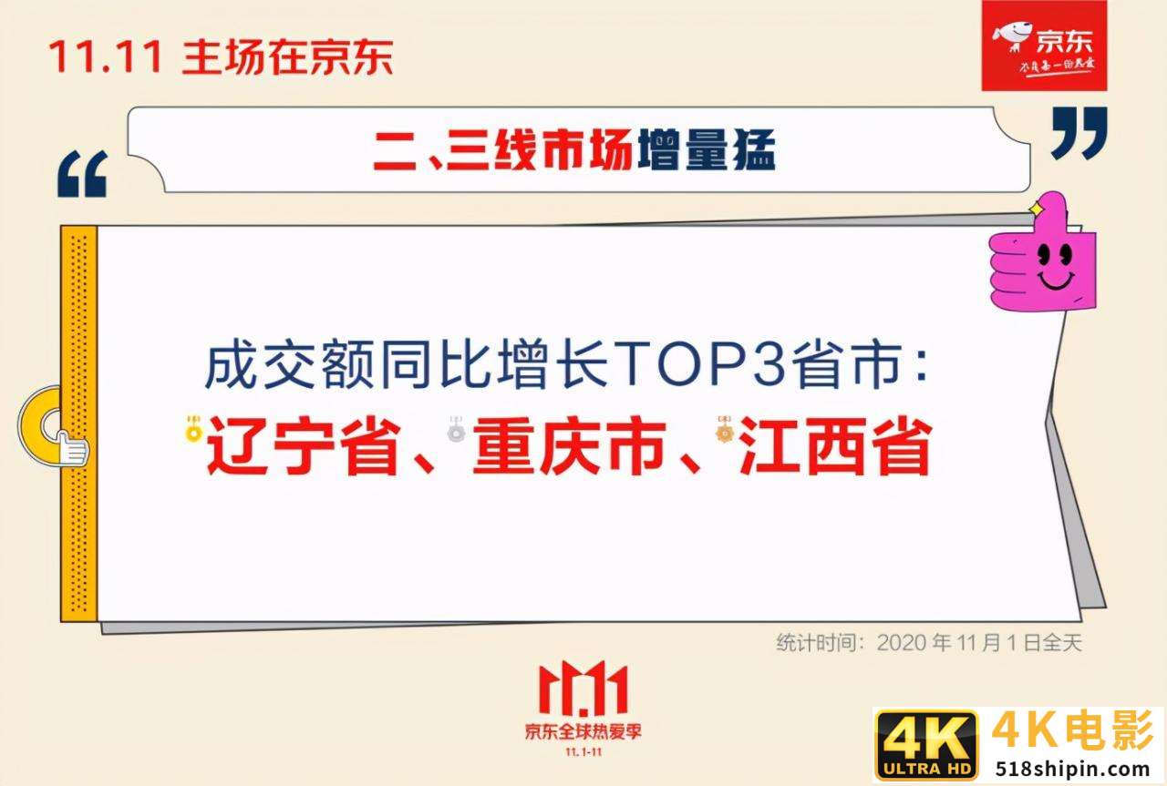 从全国市场首日消费特色分析,二三线市场的消费总量猛增,其中辽宁省、重庆市、江西省成为增速排名前三的省市。