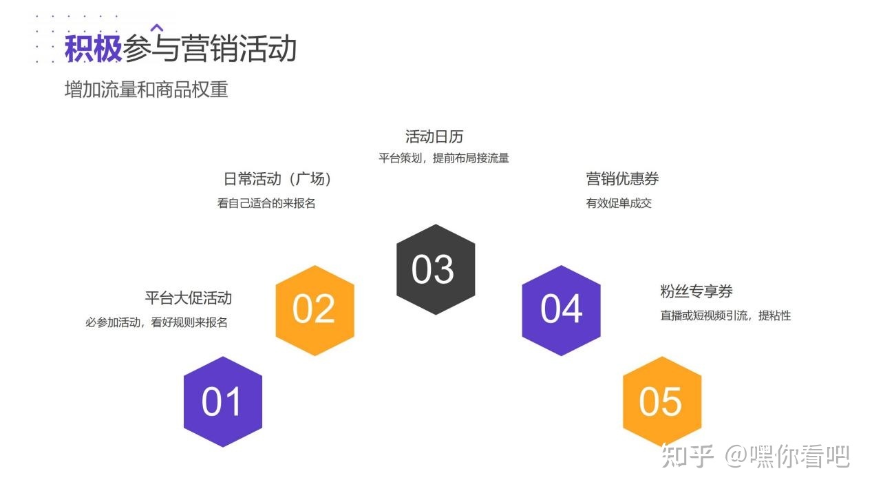 平台会策划一些活动,比如说,在母亲节快来了,或者国庆节快来了,这些大的节日,什么618、宠粉节.....这种活动要注意,平台它提前策划的,肯定会注入大量的流量进来。所以,我们要做好提前布局,然后接住这些流量。不管是你的商品的描述、你的商品的标题,还是你选品的品类,注意一定要盯住,这个活动日历来看,准备好接这种大流量。有的时候,你接住了,哗啦哗啦就是成千上万单就出来了,这个不是运气好,而是提前做好了充分的准备。然后这些活动我们参与之后,还有就是关于一些营销组件。