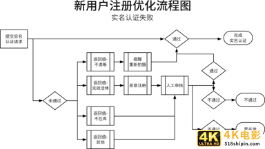 如下图所示,它告诉我们在实名认证时如果遇到未通过情况的几种不同处理方式,当返回值-不清晰的时候,则提醒用户重新拍摄再次提交即可;而如果返回值-无效活体,则潜在的表示此用户在进行恶意的注册,那么则需要将此用户的信息提交至运营后台,由运营人员进行人工的核实,如果确实是恶意用户则拉至黑名单处理,如果不是则进行人工审核;而如果返回值-不在库,则表示库中无此人信息,需要进行人工审核;如果返回值-其它,则需要进行人工审核,看具体的情况而定。