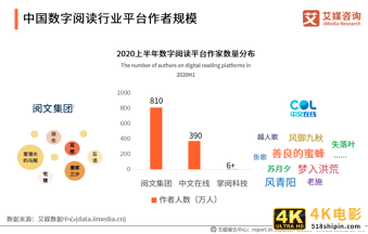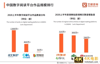 iiMedia Research(艾媒咨询)数据显示,截止2020年上半年,数字阅读内容储备量排名前三的网文平台分别是阅文集团、中文在线以及掌阅科技。在原创网站数量储备量方面,排名前三的网文网站分别为17K小说网(包含四月天小说网)、晋江文学城以及起点中文网,三大网站原创网文储量均超过200万。
