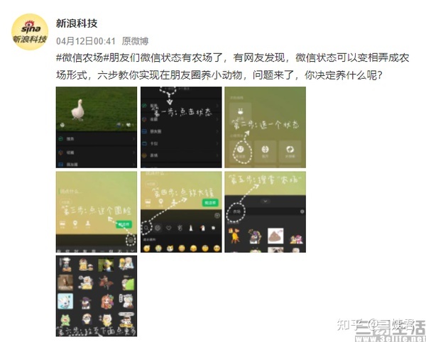 4月12日凌晨@新浪科技 发文称,“有网友发现,微信状态可以变相弄成农场形式”,很快#微信农场#这一话题就在4月13日早间达到“沸”的热度,并登顶热搜榜首位。