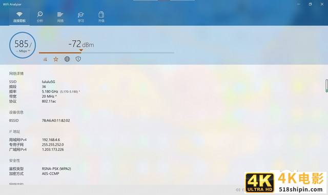 除了软件测试,我们还进行了实际应用测试,以国民手游《王者荣耀》为例,当位于客厅中时,内置的网络诊断结果如下,各项数据都十分优秀,畅玩游戏无压力。