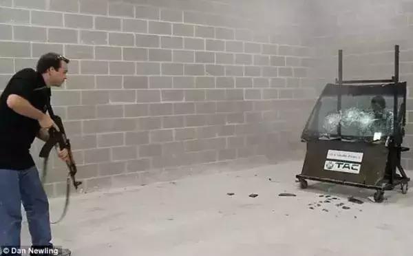 还有美国Texas Armoring防弹玻璃公司的一个案例,他们的董事长Trent Kimball搞了一件大事。他把自己公司生产的防弹玻璃(约2英寸厚)放在自己面前,然后让员工在距离不到5M的地方手持AK-47,对着玻璃直接开枪,枪枪都是对着自己老板的头啊。