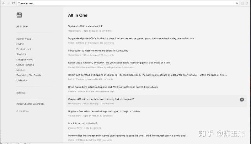 一个用来上班摸鱼的网站。在同一页里刷一刷Reddit、Hacker News、Product Hunt、Medium、Slashdot。