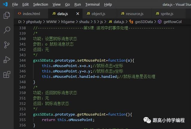 addEventListener('click',function(){})表示将click事件与匿名函数function(){}绑定,也就是说每当鼠标点击事件发生时,将调用g_oGameData.setMousePoint()函数,将鼠标点击事件相关信息保存下来。