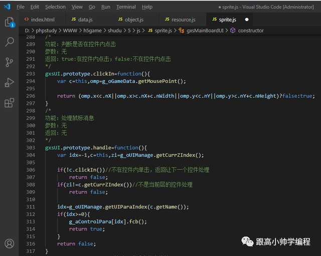 首先,我们抽象出鼠标点击事件的相关信息,重要的信息有三个,点击时的x坐标、点击时的y坐标,点击事件是否处理,并把它们定义到一个对象中,代码如下: