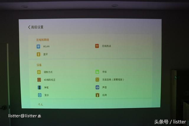 这里来着重展示一下神画Q1投影出来的画面效果。上图是我在白天下午34点的的时候,室外非常明亮室内也很明亮的环境下,用神画Q1直接投影到白强上的显示效果,要知道我家里的墙面只是用普通墙漆墙漆涂了一层,表面细看有很多坑比较粗糙,这无疑会增加漫反射影响显示效果,实际上表现居然还不错,1000ANSI流明亮度在这么明亮的环境下居然也能有如此的表现效果,无论是看文字还是画面都表示很清楚。