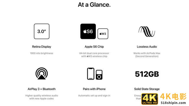 iPod Max的设计灵感来自经典的iPod Classic,采用3英寸视网膜显示屏,亮度可达1000尼特,户外使用也没有任何问题。内部核心部件,使用了W3芯片的Apple S6处理器(与Apple Watch Series 6中的芯片相同);支持最新的AirPlay 3和蓝牙音频串流;512GB内存,最多可添加100,000首高品质歌曲或50,000首无损歌曲!