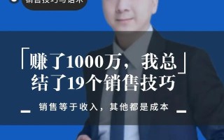 赚了1000万,我总结了19个销售技巧 1、你的个人形象的得体程度,虽然不一定能给顾客留下好的第一印象,但是所有好的第一印象,90%都产生于你的服装和妆容。 2、干销售,脸皮要厚、嘴要够甜、手要够勤,想要有业绩,先要脸皮厚,搞定了顾客,收入... 自媒体运营教程 2023-06-11 426 #销售业务 #赚了1000万 #我总结了19个销售技巧